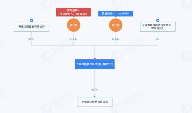 天眼查App信息显示,烨隆股份成立于2002年9月,位于江苏省无锡市。目前,该公司的注册资本为2.1亿元,法定代表人为吴云娇,主要股东包括无锡烨顺投资有限公司、吴云娇、吴云烨等。