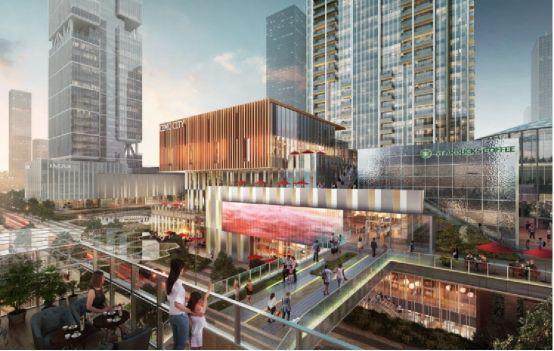 地下空间联通地铁站、公交始末站,空中连廊通达独栋办公、约8万㎡商业,互联互通设计,工作和生活随心切换,且可为商墅多入口引流。