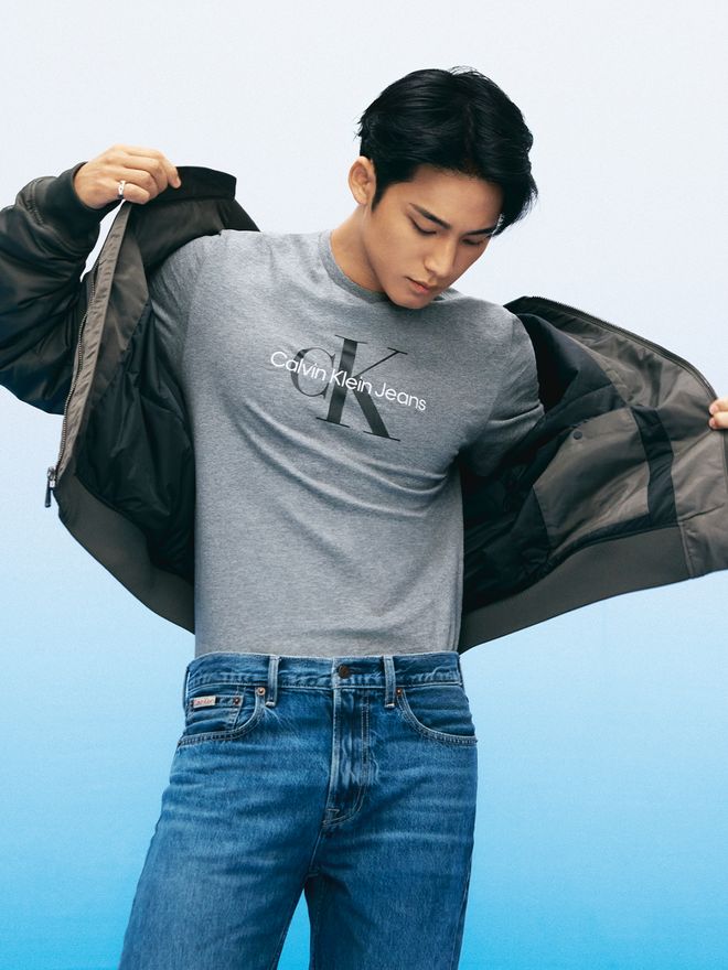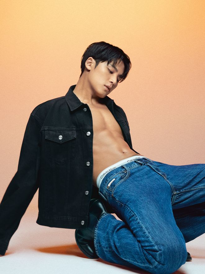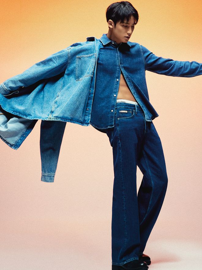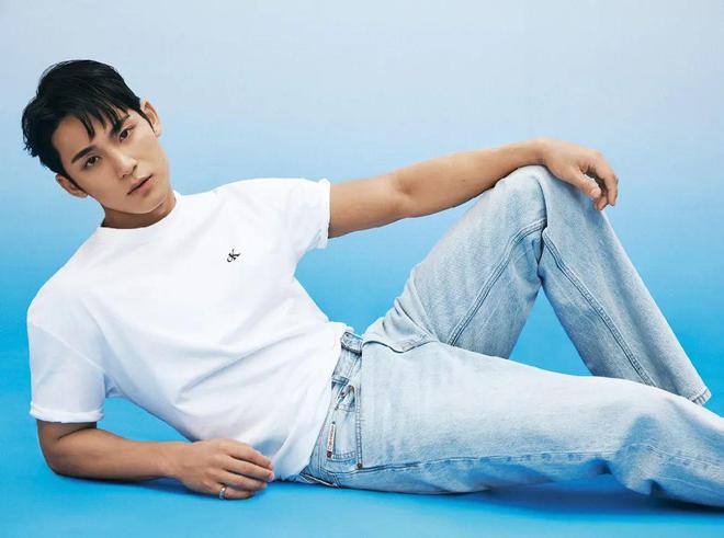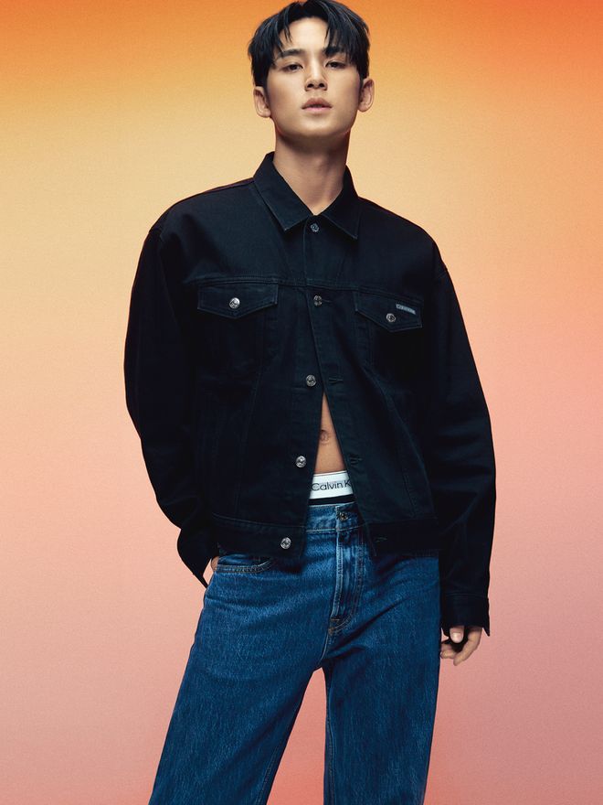 在前不久,SEVENTEEN成员MINGYU金珉奎也呈现全新丹宁大片,在柔和的蓝色与橙色背景中,金珉奎同样上身了采用全新剪裁与水洗工艺的牛仔裤单品,并用不同的上装细节进行呼应搭配。