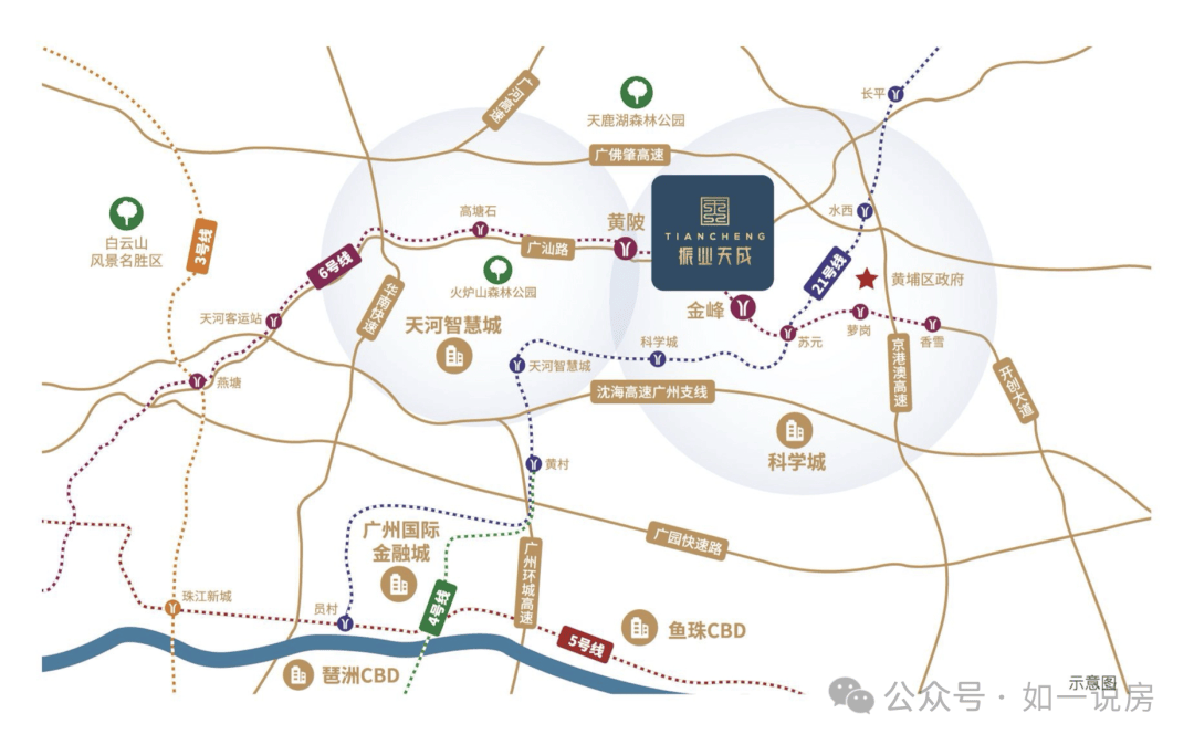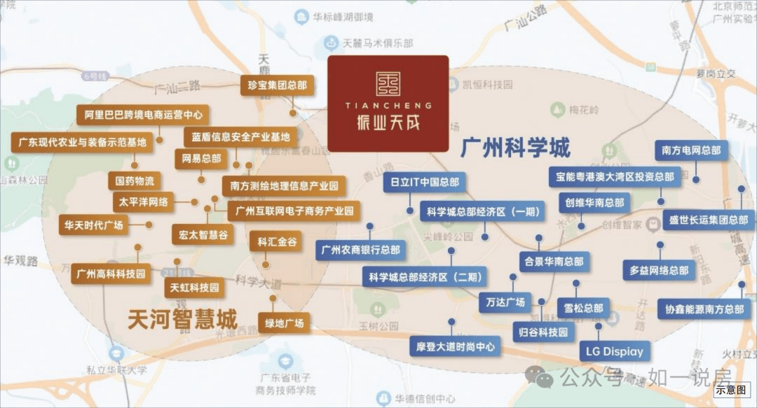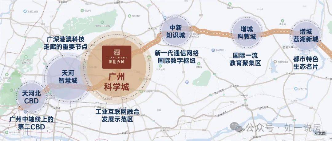 振业天成坐落于广州第三发展中轴线“科技创新轴”,处于天河智慧城和黄埔科学城双城交汇的核心位置,同时占据广汕路中芯地段。天河智慧城作为广州时隔32年成立的第二个高新区,投资力度是珠江新城的4倍,目标打造“广州硅谷”,目前已有2500家企业进驻,网易总部、酷狗等科创龙头企业纷纷在此扎根,预计2025年将成为全市创新型企业孵化培育高地。而广州科学城作为广深科技创新走廊重要“创新极”,战略性新兴产业产值占全市50%以上,科技创新能力位居全国经开区第一,致力于打造具有国际影响力的“中国智造中心”。广汕路连通天河、黄埔两大百强区,东半段串联多个生态板块,西半段连接多个核心区域,是广州未来十年规划发展的重点。振业天成尽享区域发展红利,未来潜力不可限量。